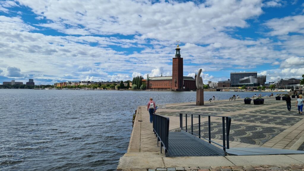 Das Wetter ist wechselhaft. Nach einem Smörrebröd (Butterbrot) kam der kalte Regen und wir fuhren weiter nach Södertälj. Dort war eine einzige Baustelle und auch sonst gefiel es uns dort nicht. Also ging es weiter nach Stockholm. Dort machten wir kurzen Prozess und bezogen einen Parkplatz im absoluten Stadtzentrum! So waren wir gleich vor Ort und haben schnell die meisten Sehenswürdigkeiten besichtigen können. Ein Scooter brachte uns dabei schneller durch die Strassen. Und so konnten wir weiter ziehen zu einem uns gemütlichen Stellplatz an einem kleinen See im Norden von Stockholm, deren es viele gibt.